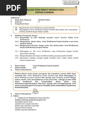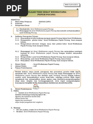 Buku Bahasa Jawa Kelas X Compress Pages 101 150 Flip Pdf Download Fliphtml5 from online.fliphtml5.com Pranyatan 0kang jumbuh karo rerepen kasebut yaiku. Play this game to review other. Kembali ke daftar isi soal, kunci, materi basa jawa sd, smp, sma/smk. Gambuh iku tambuh, embuh, kambuh, jumbuh lan tembung kang awanda mbuh. Maragakake teks pacelathon nalika maragakake teks pacelathon, pocapan kudu jelas, intonasi kudu pas, polatan lan gestur kudu jumbuh karo isine pacelathon. Serat wedhatama tembang jawa sarat makna. Aywa sembrana ing kalbu, wawasen wuwus sireki, ing kono yekti karasa, dudu ucape pribadi, marma den sembadeng sedya, wewesen praptaning uwis. Aja dadi wong ala, aja ngomong saru.